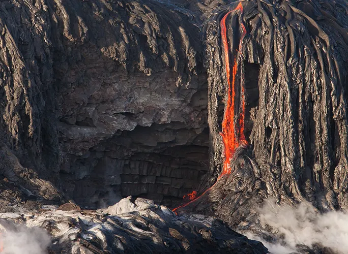 夏威夷火山國家公園有茂納洛亞火山和基拉韋厄兩座活火山,整個公園從茂納洛亞火山山頂延綿到海洋。沿著徒步小徑穿過火山口、沙漠和熱帶雨林,沿途有博物館、岩畫和能進入的熔岩通道。在火山口周圍還能看到被摧毀的小鎮建築遺跡。基拉韋厄火山十分活躍,巨大的火山口彷彿一口大鍋,通紅炙熱的岩漿在火山湖中流淌,堪稱是大自然的奇觀。