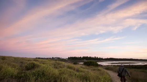 4.7 分6 則評價距離市中心 距離市中心1.2公里格林島是仙女港(PortFairy)的一座火山巖島嶼,有橋與陸地相連,莫耶河(MoyneRiver)從島與陸地之間流向大海。這裡是看日出、日落的好地方,徒步環島一週約需1小時,海岸邊隨處可見黑色的巖石,在島的東北角有一座樸素的燈塔。此外,島上棲息着受保護的紅嘴海燕,每年10月-次年4月可以看見它們。半月灣