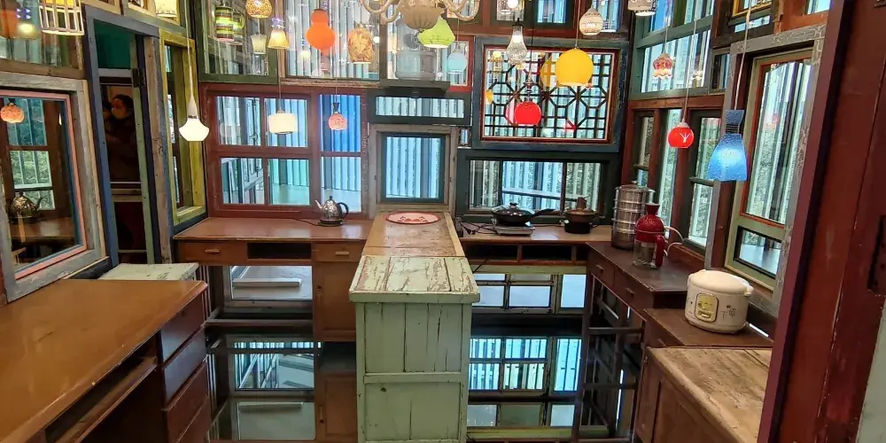 由廢棄的紫泥糖廠改建而成的創意園區,在紫泥堂進來,吸睛的就是這面用酒瓶砌成的牆身,棕黑色和綠色的玻璃瓶子規律地排成一列列,由底往上與牆融為一體。