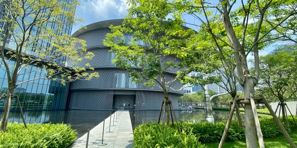 和美術館由建築師安藤忠雄擔任設計,總面積約為16,000平方米,其中展廳面積約8,000平方米。通過運用清水混凝土作為建築材料,安藤先生將光、水、風等自然元素融入到這座具有嶺南建築文化意境的美術館中。