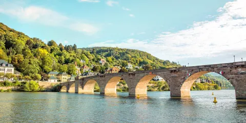 海德堡的老城區是這座城市的觀光中心,位於內卡河南岸傍河而建的長條形區域,這裏的大街小巷完好地保留着風格古樸的建築。老城區的景點分佈於內卡河的兩岸,與內卡河平行的海德堡步行街(Hauptstrasse)是歐洲最長的步行街之一,沿途有各種商店、景點、和餐館,是老城區的中心地帶。德國最古老的海德堡大學也位於此,使得這裏不僅有深厚的文化底藴,更有年輕人的蓬勃朝氣。海德堡老城區的景點很集中,一天時間可以步行遊覽完畢,時間充裕的話不妨放慢腳步,細細品味這個讓歌德將“心遺落”的地方。老城看點遊覽老城區可以以俾斯麥廣場為起點,沿着海德堡步行街邊走邊逛,小路由卵型石塊鋪墊,狹窄蜿蜒,這裡有高端品牌商店,也有別具特色的手工藝品店、甜品店和各色餐館。著名的海德堡大學廣場位於海德堡步行街的中心處,和國內的大學不同,這裏沒有校門也沒有寫着銘牌的標誌,其氛圍須細細體會。大學廣場是海德堡大學中心所在,廣場前白牆黑瓦的建築是建於18世紀初的舊教學樓,裏面有為建校500週年建立的華麗大講堂,可以免費入內參觀。離廣場不遠有一幢紅磚牆描金裝飾的大樓,十分搶眼,它是海德堡大學圖書館,裏面展出了中世紀的珍貴書籍。之後,你可以去位於老大學樓內的學生監獄參觀,之前這裡是搗蛋的學生關禁閉的地方,現在成了展示他們禁閉生活的博物館,門票可在入口處購買。參觀完後繼續沿着步行街前行來到市集廣場,這裏的聖靈教堂很值得一看,這座典雅的哥特式紅磚建築已有近700年的歷史。如果你想休息一下,就去教堂對面的Knösel咖啡館(Café Knösel)坐一坐,這是海德堡最古老的咖啡館,也是海德堡特色巧克力“大學生之吻”(Studentenkuss)的誕生地,不妨在此好好挖掘一下巧克力背後的故事。來海德堡老城區遊覽的重中之重就是參觀海德堡城堡了,在市集廣場南邊的糧食廣場後方有前往城堡的纜車站,你可以搭乘纜車登上城堡山頂,也可以選擇從糧食廣場的石階徒步上去(約15分鐘),順便欣賞沿途風景。海德堡城堡坐落在王座山上,由紅色砂石所建,雖已破敗但仍不失昔日風采。進入城堡中庭,迎面矗立的是醫葯博物館,展示了百年前的葯物。它的左側是菲德烈宅邸,壁面上刻有歷代王者的雕像,它的地下室裏有著名的大酒桶,直徑有7米之長,可以試飲(一杯2.5歐元左右)。中庭右側的火葯塔還保留着當年遭法軍炮擊後的原貌。城堡後面有一片大花園,開放時間不限且可免費入內,你可以欣賞美麗的鮮花和噴泉,也可以在此眺望海德堡老城風光。花園中央有一張歌德長椅,據説是歌德散步時最喜流連休憩之地。遊覽完海德堡城堡可能已時近黃昏,這是漫步海德堡老橋和哲學家小徑的最佳時刻。海德堡老橋(Alte Brücke)位於市集廣場北邊,由選帝侯卡爾·西奧多的名字命名。老橋建於18世紀,是內卡河上最古老的橋。老橋的入口有一尊手拿銅鏡的銅猴雕像,據説摸一摸銅鏡能帶來好運,摸摸猴子的右手手指能重返海德堡,想要求子,就摸一摸旁邊的一對銅鼠雕像。老橋的南端矗立着選帝侯的雕像,北端有智慧女神的雕像,站在北端雕像旁向南岸望,你會看到一幅由老橋、內卡河、海德堡城堡組成的絕美風景畫。老橋旁一條蜿蜒崎嶇的坡道通向的便是哲學家小徑了,沿途設有長椅供人休息,道旁的觀景台是眺望海德堡老城的最佳地段,夕陽西下,整座老城更顯動人。之後,可以從小徑的另一側西出口下山,過新橋返回俾斯麥廣場。黃昏時分的內卡河別有一番韻味,你可以乘坐遊船,用另一種方式體驗海德堡的迷人風光。租船點在內卡河南岸近老橋處,環遊時間為50分鐘,還在晚間提供如燈光表演、城堡焰火等表演,價格在7歐元左右。如果你想體驗一把腳踏小船的樂趣,可以在俾斯麥廣場正對的特奧多爾·豪斯(Theodor-Heuss)橋北岸租到,每小時20歐元左右。想尋覓美食的話可以去大學廣場和市場廣場之間逛逛,這裏的餐館、酒吧、咖啡屋比比皆是,而且價格實惠,10歐元左右就可以饕餮一頓了。可以嚐嚐當地特色的“火焰蛋糕”(Flammkuchen)、炸牛排(Schnitzel)、烤豬肘(schweinehaxe)和啤酒等。