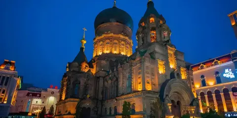 則評價始建於1907年的聖索菲亞大教堂是哈爾濱的地標性建築,它那綠色的洋蔥頭式大穹頂十分引人注目,這座宏偉的拜占庭式建築雖然已不再具有教堂的功能,但作為哈爾濱較為漂亮的異域風格建築,它仍吸引著眾人慕名前來參觀。聖索菲亞大教堂目前是中國保存完整的拜占庭式建築,雖然在1997年就更名為“哈爾濱市建築藝術館”,但是無論當地人,還是外地遊客,更願意稱它為“索菲亞大教堂”。