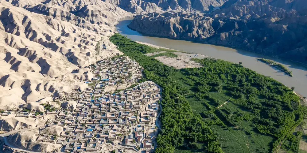 南長灘村是因黃河黑山峽沖刷淤積而形成的狹長河灘地,這裏羣山環繞,幾乎與世隔絕。村中的拓拔寨人是西夏党項族支拓氏為逃避戰亂遷居至此的,數百年間用汗水締造了一座室外桃源的原始村落。南長灘村地處中衞較西頭的深山裡,南長灘黃河在這裏轉了一個大彎,在河南岸形成了一個月牙形的長灘,稱為南長灘。這裏四面靠山,一河環流,形成了弧形半島,像一塊翡翠鑲嵌在黑色的石頭和土色的河水之間,十分幽靜。如今南長灘村裡還保留着史前巖畫、古代水車、秦代長城等歷史遺跡,河灘邊生長着三、五百年的梨樹和棗樹,每到4月中旬梨花盛放的時候便是南長灘較美的時刻。