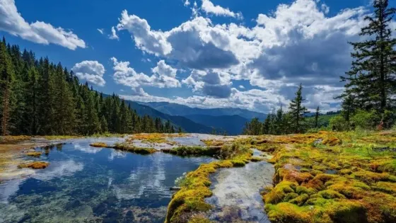卡龍溝的由來有這樣一則傳說:很早以前,三位仙女降落凡間,由於留戀凡間的美景不願離去,大姐、二姐化身成了九寨、黃龍,小妹化身成了現在的卡龍,天神也如同凡間的百姓,寵愛最小的孩子,所以,卡龍聚集了九寨的神韻、黃龍的夢幻。