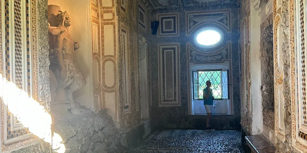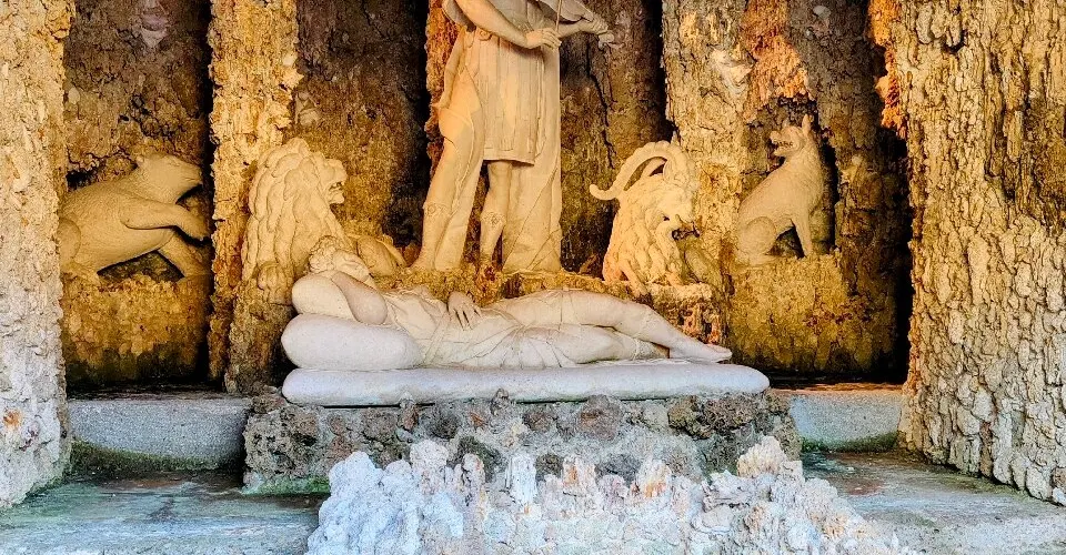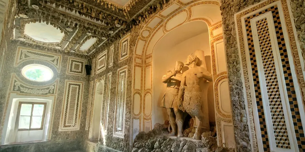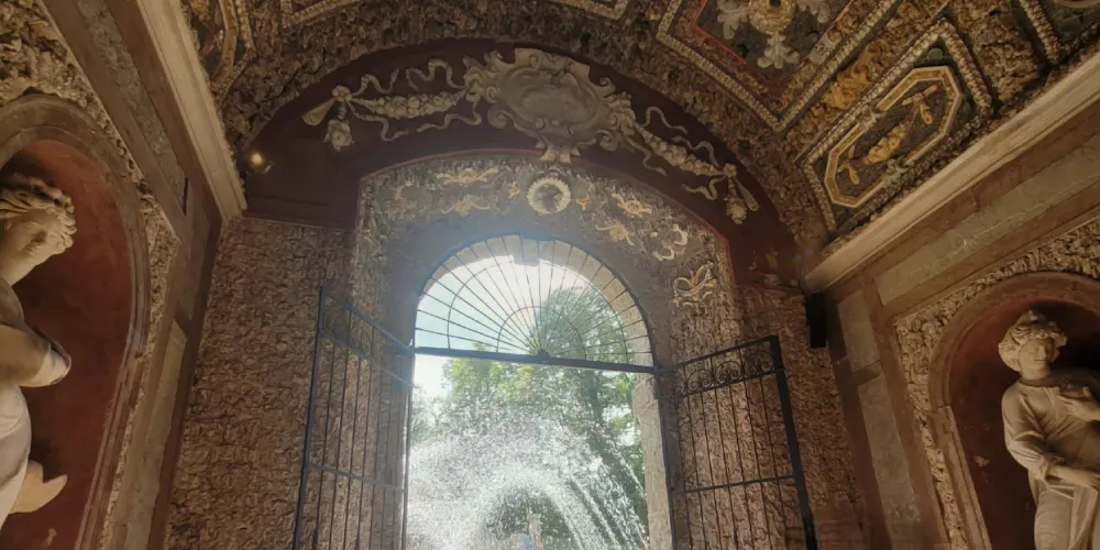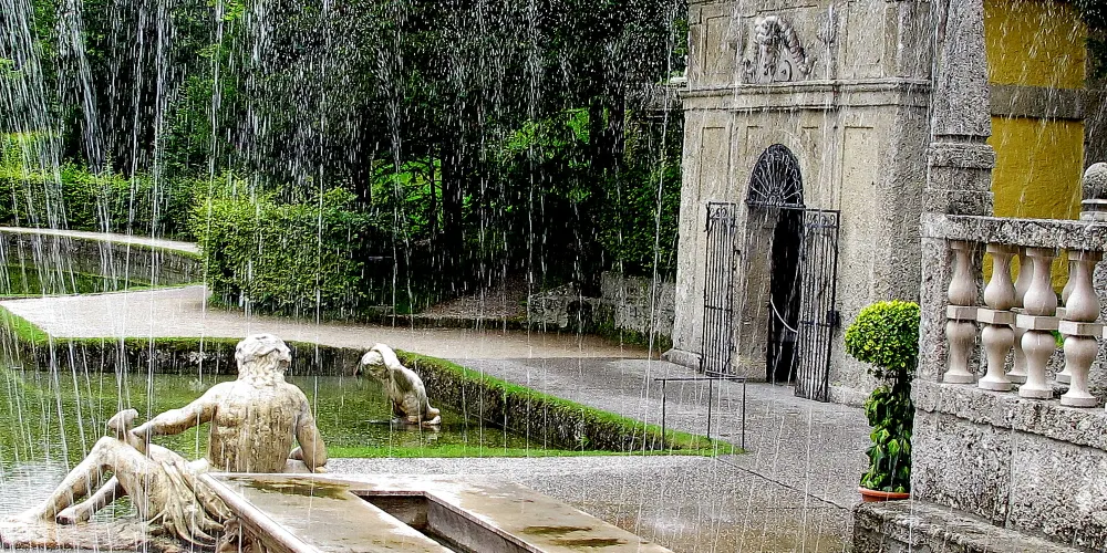 園中的其它小宮殿也都暗藏玄機,牆面上懸掛著的鹿頭裝飾會趁你不備噴出水花,房屋前的過道兩側會在你走過時突然開始噴水,小宮殿的深處宛如地下洞穴,這裡有海神等希臘諸神以及各種水怪的雕像,時不時給人清涼的惡作劇,參觀時可以提高警惕哦。