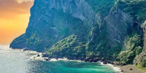 山房山聳立在濟州島西南部的平原一帶,是一座呈火山模樣的鐘狀火山體。