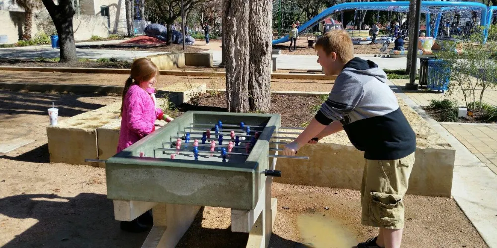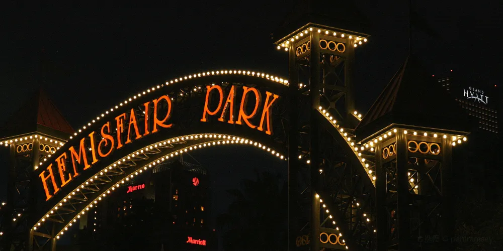 赫米斯費爾公園地處river walk的附近,因為在1968年舉辦過世博會而被人熟知。公園裡人非常少,因此環境比較安靜,非常適合任何人們在這裡散步停歇。公園內還有一些建築,它們富有濃厚的墨西哥風格。這裡人較多的地方在Tower of the Americas,遊客可以乘坐電梯到塔頂觀賞附近的景色,在塔下還有噴泉,非常美麗。