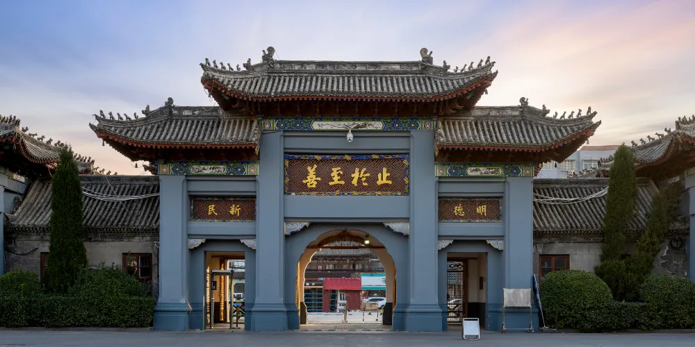 楊府建築主體有楊家府衙、楊家花園、演兵場三部分,其中楊家府衙是楊府的主體部分,依次建有大門、照壁、鐘鼓樓、天波樓、東西配殿、後殿等建築。在這裏,遊客可以看到楊家將羣塑、佘太君廟、楊家兵器等大量實物資料,還有歌頌楊家將忠心報國的大型羣雕和祭祀楊家將的孝嚴祠。府衙中的天波樓,是仿造當年的 “清風無佞天波滴水樓 ”,在一樓大廳內設有羣雕 “ 楊業發兵幽州救主 ”,二樓有羣雕 “ 佘太君楊門選將 ” 。