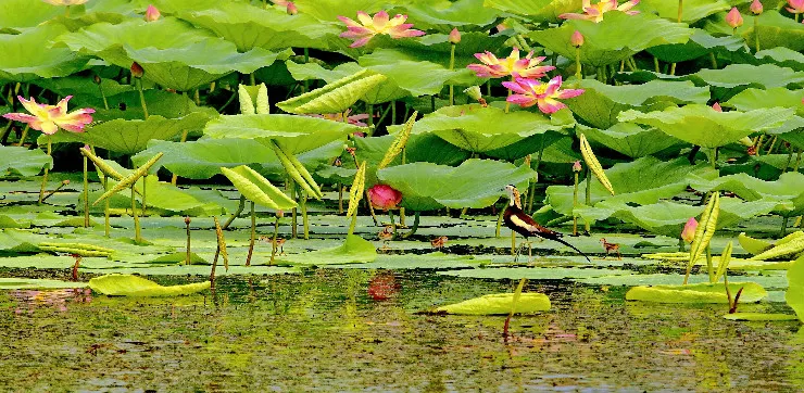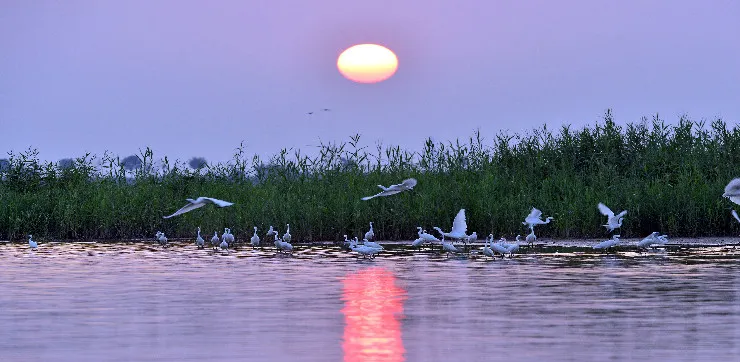 衡水湖位於河北衡水市冀州市城區北側,是面積非常大的淡水湖泊。這裡有兩處湖心島,一是三生島,島上種滿了綠色植物,樹木茂密,主要是以觀賞鳥類為主;另一處是梅花島,島的形狀像一朵梅花而得名,主要以觀賞動物為主。這裡可以乘船遊湖,近距離觀看碧綠的蘆葦蕩和美麗的荷花。