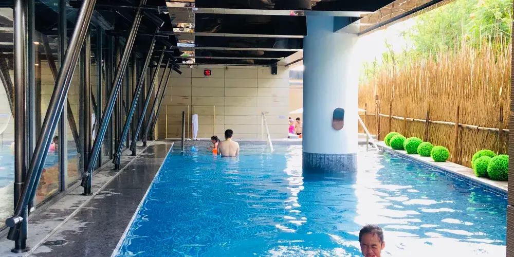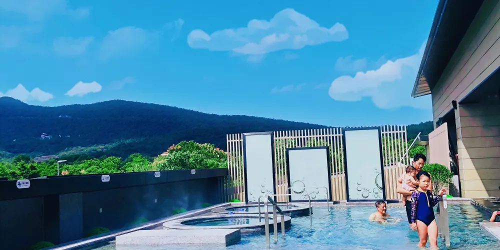 臻温泉臨湯山金烏温泉公園而建,因地制宜將生態環境與人文藝術完美詮釋糅合。在這裏,卸下都市生活帶來的繁重,輕鬆自在的沐浴温泉。臻温泉既不失東方意境的輕奢寫意,又設有戲水池、小童池、旋渦池、按摩池等,滿足遊客各種需求。