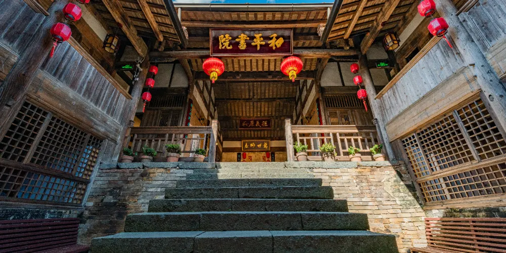 和平古鎮位於邵武南部,是福建省歷史悠久的古鎮之一。和平舊稱“禾坪”,取地勢平坦和盛產稻穀之意。古鎮內有出名的“和平書院”,李、黃、廖三姓氏的五座“大夫第”,以及岐山公祠、丁氏公祠、司馬第等近上百幢典型明清古民居建築群。