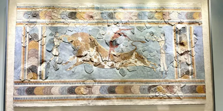 在博物館的第14、15、16室中,珍藏著從諾索斯宮殿遺址出土的壁畫,比較著名的如戲牛者、百合王子、巴黎女子等,這些都是米諾斯時期文化的典型代表作。