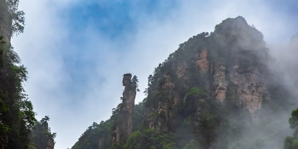 索溪峪又稱索溪,因景區內的溪水形狀似繩索而得名。與森林公園其他險峻之地不同,這裡終年雲霧繚繞,清澈的溪水四季奔流不息,處處可見秀麗山峰。十里畫廊是索溪峪的精華景點,長達5公里的峽谷中野花飄香,奇峰異石林立。漫步其間,宛如置身一幅自然山水畫卷之中。