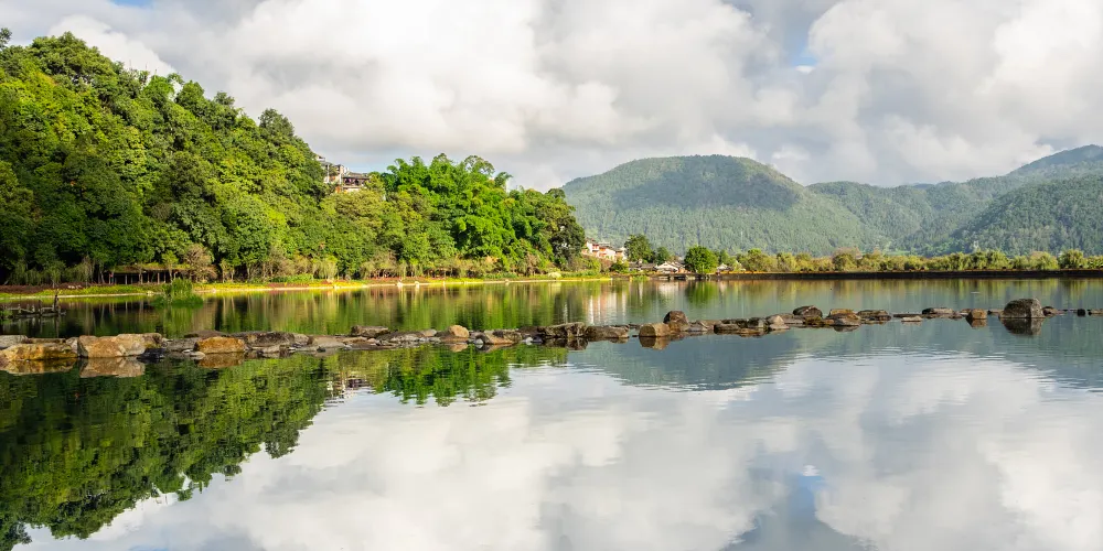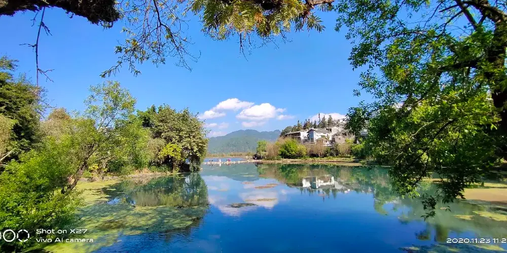 和順村頭小河繞村而過,兩座石拱橋跨河而建,形似雙虹臥波,故名雙虹橋,據傳建於清道光年間。兩橋造型精美,橋畔綠柳成蔭、紅蓮映日,村婦搗衣之聲不絕;橋下群鴨戲水,魚翔淺底,一派高原水鄉的恬美風光。