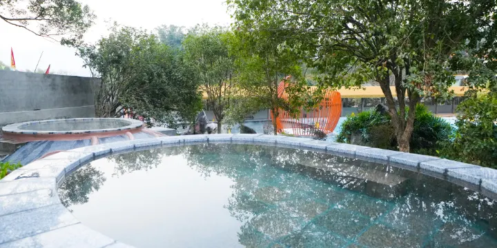 來到溫泉區,綠樹環繞、水霧繚繞之景便迎面而來,除了露天池區,這裡還設有獨立的木屋院落小池,可讓客人盡情享受私密空間。景區也不乏養生泡池,如溫泉魚療、金銀花藤浴、薄荷浴、艾葉浴等。多種類型的住宿客房和經營美味的溫泉餐廳,使得這裡成為了賀州的休閒度假勝地之一。