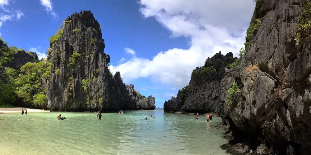 位於Miniloc島上,離小瀉湖不遠,是愛妮島的特色。兩岸的風光很像海上的桂林山水,非常漂亮,可以只在船上遊覽兩岸的美景,也可以劃獨木舟,下海遊泳和浮潛。