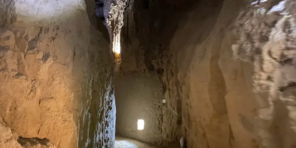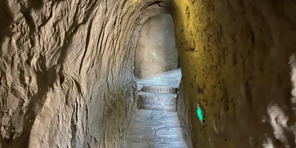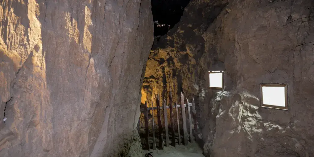 在水洞溝通往紅山堡幽深莫測的大峽谷中,保存着500多年前的明代藏兵洞。它依託雄偉的長城、險峻的崖壁、神祕的古城堡而更顯神奇。水洞溝藏兵洞洞內分岔,有如迷宮。在清理出來的近千米洞道里,闢有20多間土室,其中有小型糧倉、水井、廚灶、兵器庫、火葯庫及陷阱、暗器孔道及指向大峽谷的炮台等軍事防禦設施。土室內牆壁上有小龕,置有破碎陶器,似為油燈之屬。在地面上還可以找到明代兵器的殘件、錢幣、瓷器碎片等。