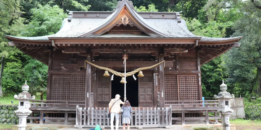 日枝神社內別有景緻,參天的古樹林立,神社正殿是古木建築,相當古樸,兩者相得益彰。日本對歷史文物和傳統的保護是已臻化境,不僅保存完好的建築物,更是把周邊整體的環境與氛圍也非常完整的保留下來,呈現出原始的狀態及韻味。神社內還有着幾株櫻花樹,伊豆的櫻花大多是早櫻,2、3月就開始盛放。