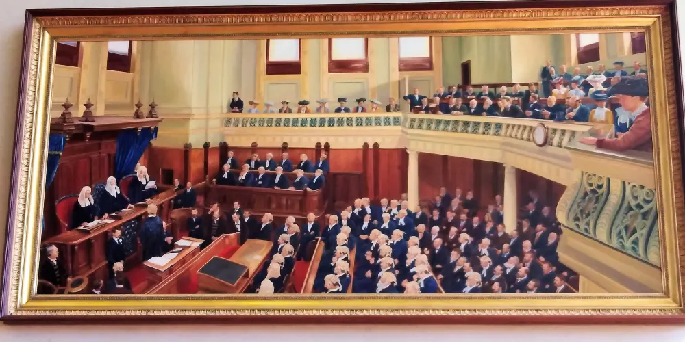 國會內到處都掛著鐘,連廁所裡都有,提醒人們開會的時間,如果晚了是不允許入場的。