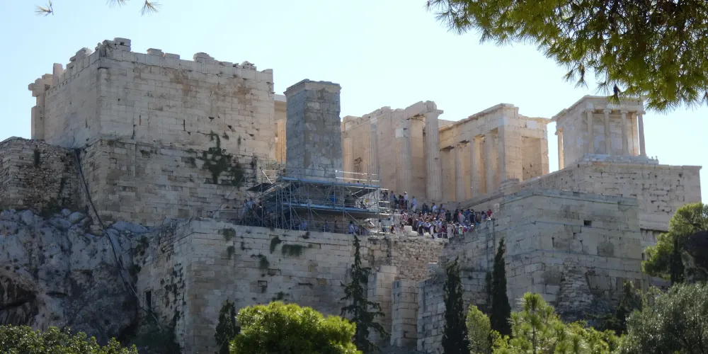 △ 雅典衛城位於雅典市中心西南部,雄踞150多公尺高的衛城山丘之巔,是城市的地標和古希臘的象徵。 衛城始建於西元前580年,Acropolis在希臘語中意為“高處的城邦”,山丘的東、南、北三面都是懸崖絕壁,可謂是一道天然屏障。