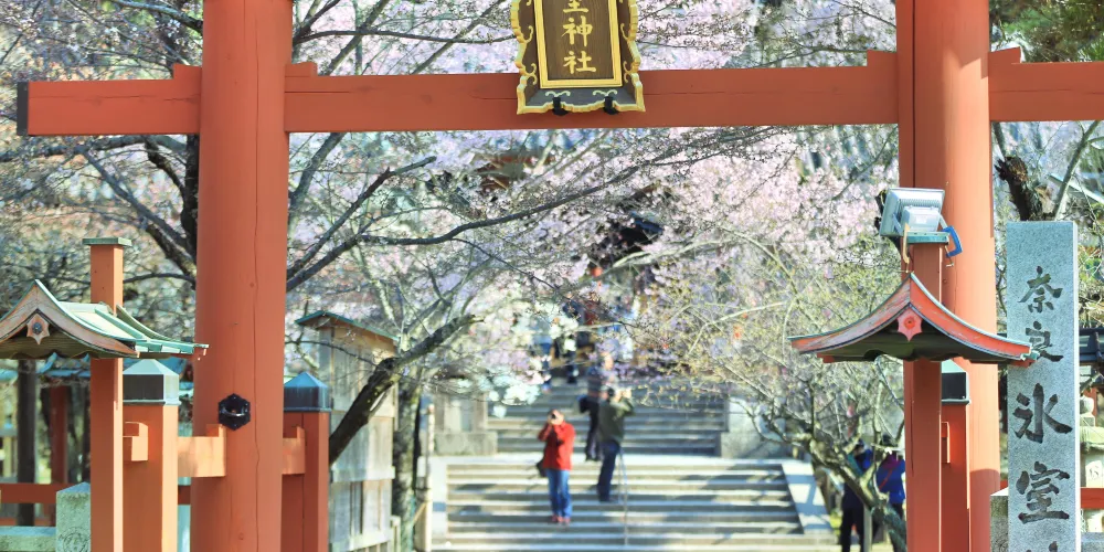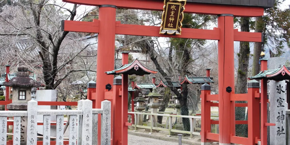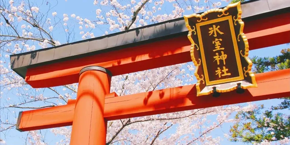 冰室神社位於奈良,因這裡供奉著守護製冰業和冷藏冷凍業的冰之神而得名,境內一棵高大的枝垂櫻四月初就會開滿小小的白色櫻花,因此神社也成了奈良賞櫻的好去處。710年元明天皇遷都平城京,在吉城川上遊建造了冰池和冰室。春天祭祀冰之神,祈願新的一年風調雨順。