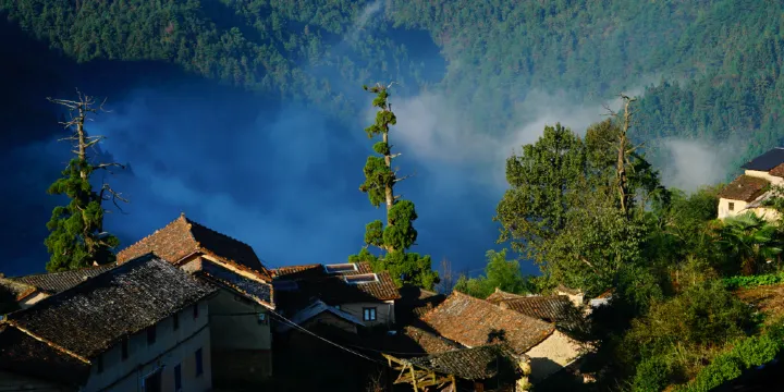 平田村位於海拔610餘米之處,依山而建,羣山環繞,古樹環抱,晨間雲蒸霧繞,晴日向晚,則有晚霞織錦。外表清麗,骨子傳統,四分之一的村民脱離了鄉土生活,四分之三的人仍然生活在這方水土。自然風貌也好,並被定位為“傳承傳統農耕文化,融入時尚文化元素”的特色民宿村。夯土的黃牆,黑色和磚紅相間的瓦,木色的門窗,依山而建的平田村,十分美麗。選擇一個令你傾心的民宿,住上幾個小日子,感受在“雲上的村莊”的慢生活。