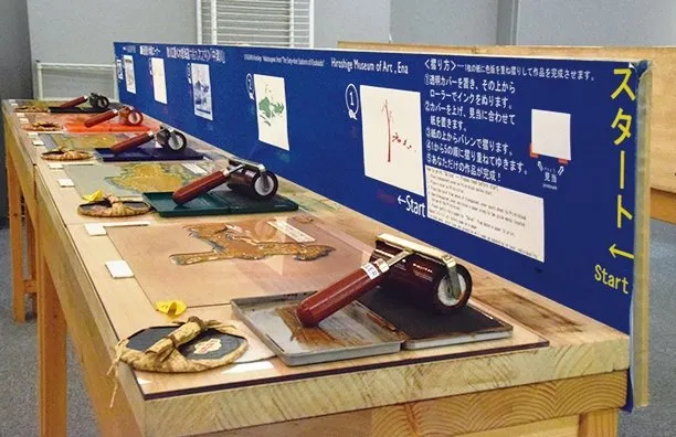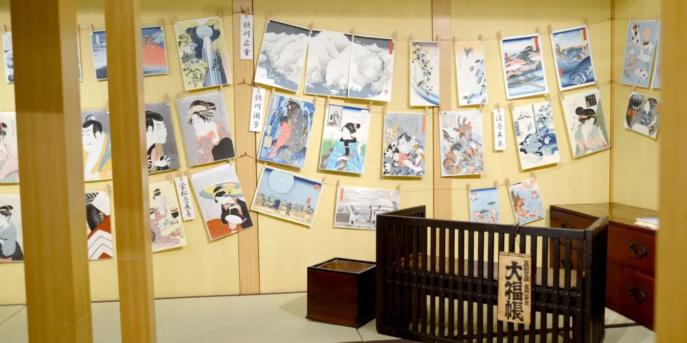 中山道廣重美術館館內收藏的美術品為歌川廣重在其盛年期所繪的中山道,包括《木曾海道六拾九次之內》等約500件作品。這些聞名世間的作品是田中春雄的收藏品,在館內以每月企劃展示的形式展出。此外,館內還有浮世繪導覽間和畫廊,能學習有關浮世繪的知識,其中還設有浮世繪“疊印體驗角”,深受遊客歡迎。