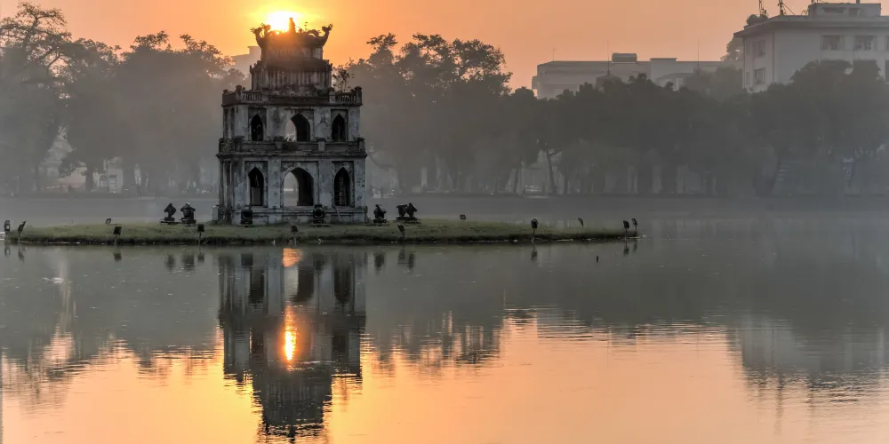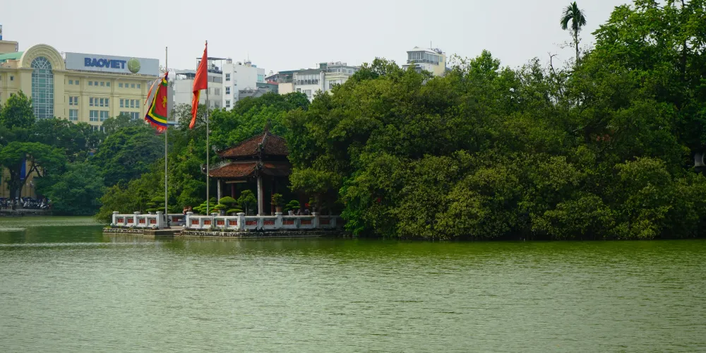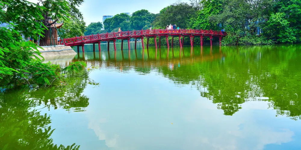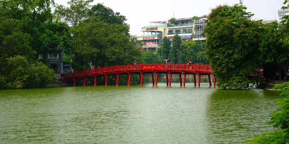 還劍湖位於河內舊城區的中心,周圍有林蔭步道,是當地人納涼、散步的休閒之所。湖面上有兩處建築,北邊的是玉山寺,南邊的是龜塔。除了欣賞美麗的湖景,還能看到周圍具有典型當地風情的建築。還劍湖的東北邊有一座紅色的棲旭橋,連接著湖北部中心的玉山寺,適合拍照留念。