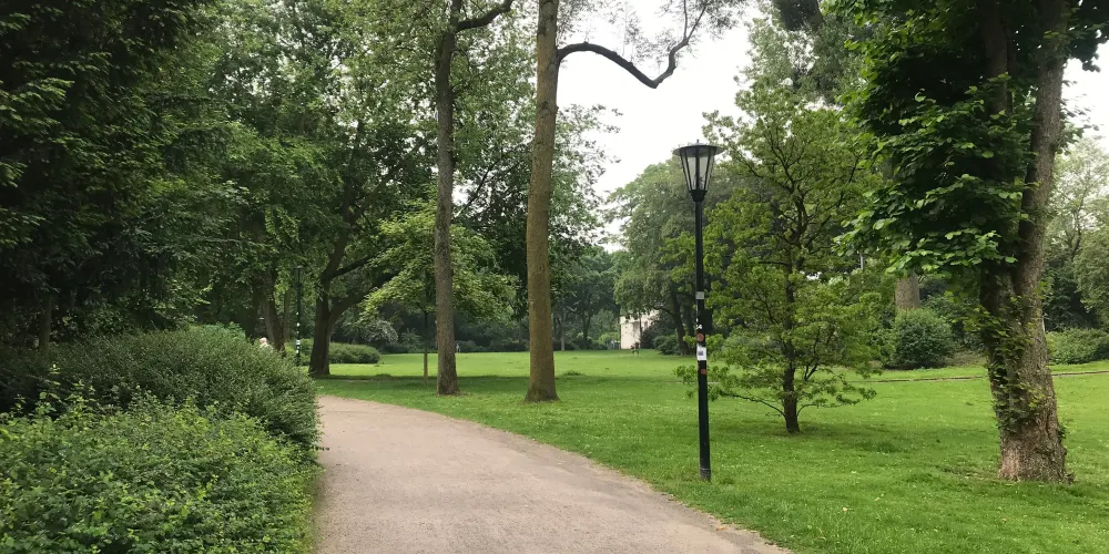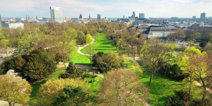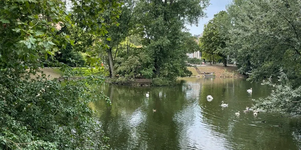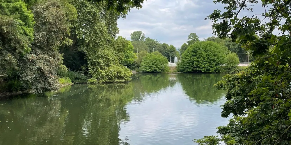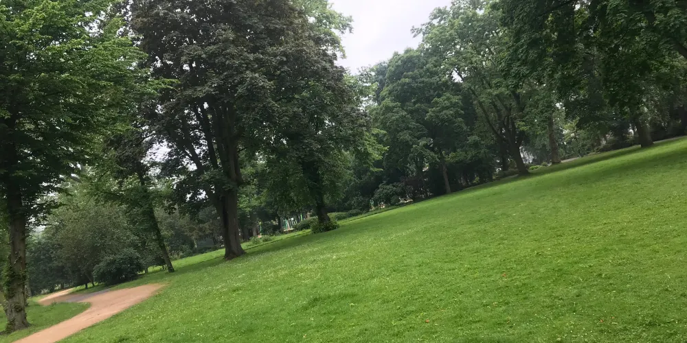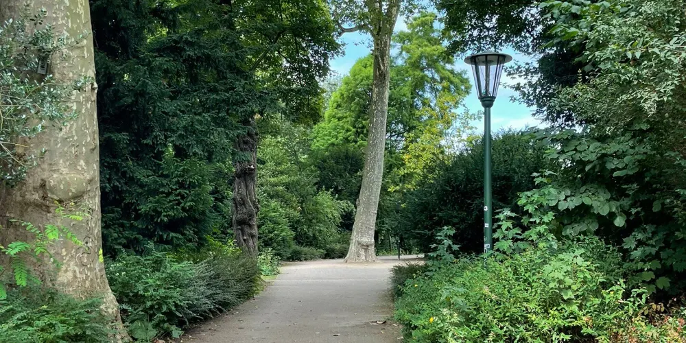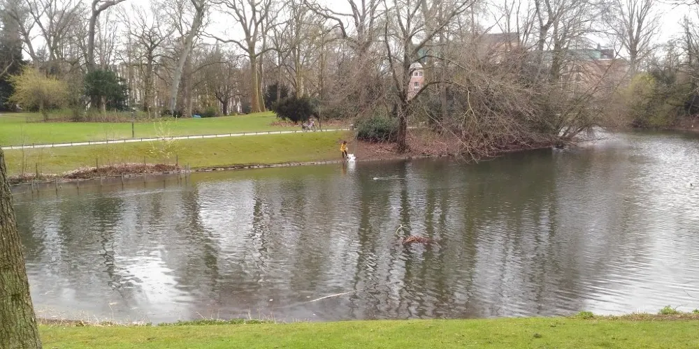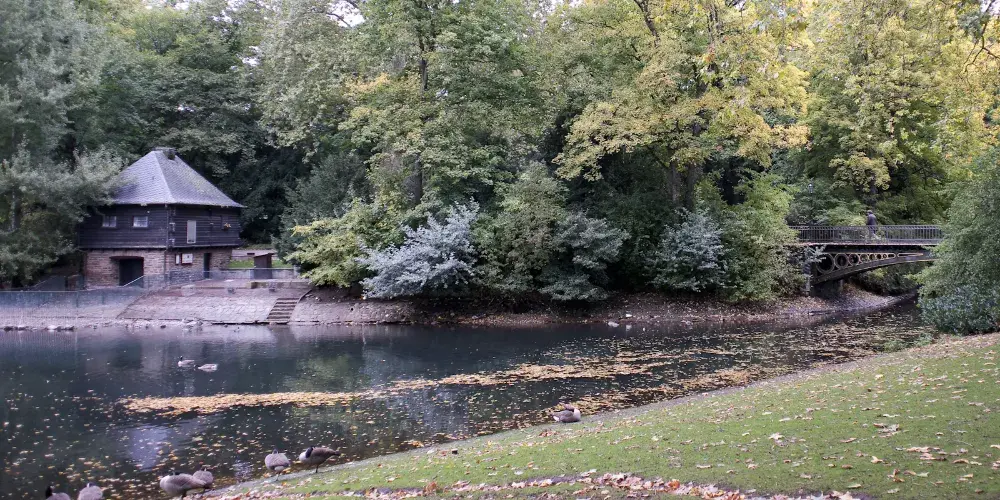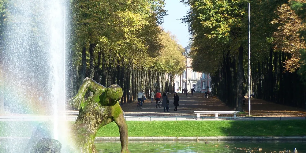 霍夫花園位於杜塞爾多夫老城,是一個非常別緻的歐洲花園,是耶格霍夫宮的後花園,在巍峨的公主宮殿後,有一個非常漂亮的湖,湖面上經常有野鴨子或是天鵝停留戲嘻,湖邊綠樹成蔭草地平整,很多市民和遊客在這裡鍛煉休息,非常的寧靜舒適。花園的草地被精心打理,修建的非常整齊,並且呈現出不同的幾何圖案。花園內還有海涅、羅伯特·舒曼等其他德國知名人士的雕像。