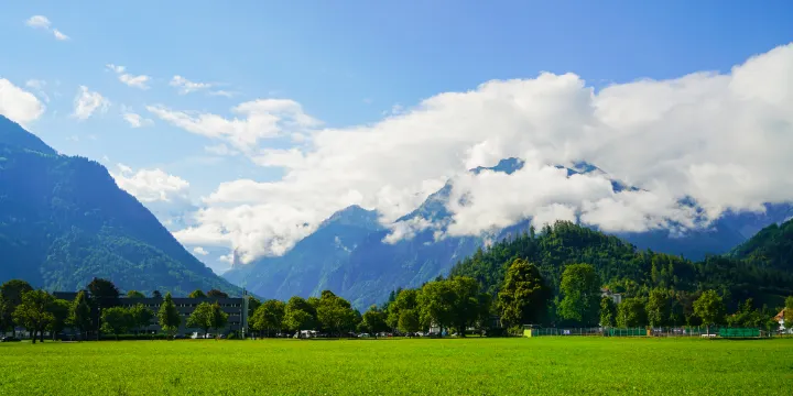 荷黑馬特還是滑翔翼的降落地,草坪邊上有接待點,付費後會有工作人員把遊客帶到附近山上進行自由滑翔,體驗在高空欣賞因特拉肯的美景。