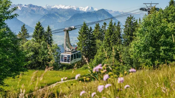 早在19世紀維克多·雨果等文化名人就到訪過這裡,1864年英國維多利亞女王也曾親臨瑞吉山。登山鐵道和纜車遊客可以選擇搭乘登山鐵道列車或纜車登山。從菲茨瑙出發,有建於1871年的歐洲第一條齒軌登山鐵道,從Goldau出發也有齒軌登山鐵道,兩條路線都可以登頂(RigiKulm)。若是從韋吉斯出發,則可以搭纜車線,從高空欣賞瑞吉山的壯麗風光,但只到山的中間站—卡爾特巴德半山小鎮。步行步道瑞吉山的山勢較為舒緩,超過一百公里的步道自上而下在山體的側面延展開。這裡的高山植被也多達數千種,甚至還有一條山花小徑。還有一條約2小時可以走完的下山緩坡,景色宜人,不需要特別強的體力。