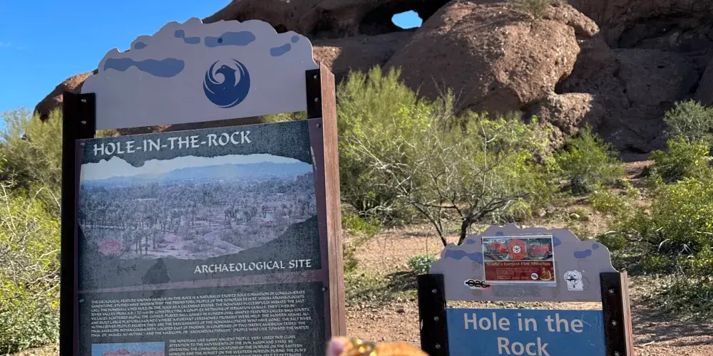 Hole in the Rock位於美國亞利桑那州鳳凰城的帕帕戈公園內,是一處獨特的地質奇觀。它由紅色砂岩構成,經過約 2000 萬年的風雨侵蝕,造就瞭如今令人稱奇的模樣。