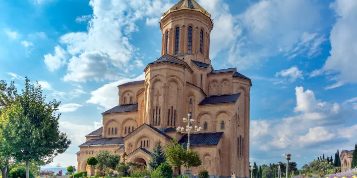 位於第比利斯市伊利亞山上的第比利斯聖三一主教座堂,如今這裡是格魯吉亞東正教母堂。大教堂建築群包括院牆,鐘樓,若干小禮拜堂等。大教堂的主建築很高,是格魯吉亞極高的教堂,在城市的各個地方,基本都能看到這座教堂。教堂東北角有馬賽克聖母像,東南角有十字架和手抄本《聖經》展櫃,西北角還有云母耶路撒冷聖城模型等。
