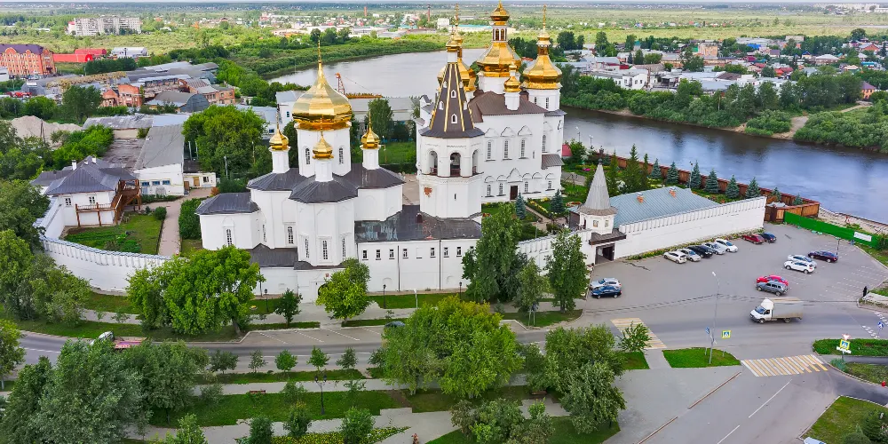 秋明的聖三一修道院建於18世紀,在蘇聯時期曾經遭到破壞,重建於2008年。修道院的外觀顯得霸氣十足,金碧輝煌。