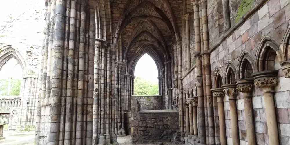 荷里路德大修道院位於荷里路德宮的邊上,是一個能勾起歲月回想的地方。如今修道院的大部分建築已經廢棄,衹剩下一些斷壁殘垣的廢墟,但仍然值得你在參觀荷里路德宮時,順便花上一二十分鐘來感受一下古老的氛圍、宗教精神和建造工藝之美。羅馬風格與哥特風格在這座修道院中都有體現,你可以透過殘破的廊柱和高挑的拱門看向天空,別有一番滋味。