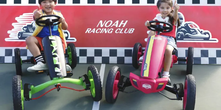 在綠林樹影的懷抱下,好動的大小朋友可腳踏高卡車,享受既刺激又安全的馳騁樂趣,盡情放電。Let's Go!