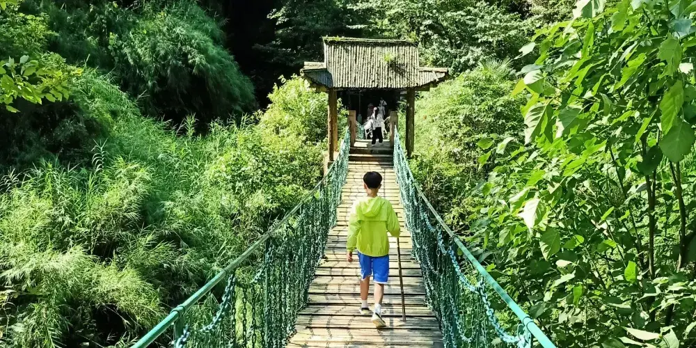 峨眉山一線天位於清音閣前往洪椿坪的路上。進入峽谷後,沿著峽谷內的棧道曲折步行,耳旁是瀑布的轟鳴聲,兩邊是陡峭的崖壁,就如同一把巨斧將大山劈開。抬頭向上望去,露出一線藍天,寬不過3-5公尺。