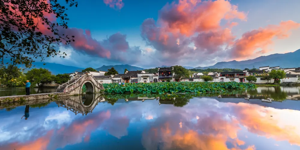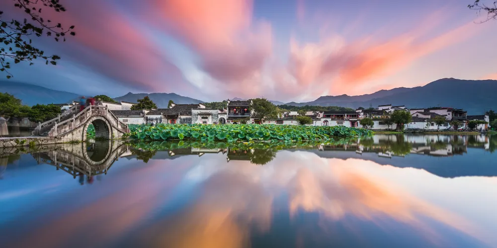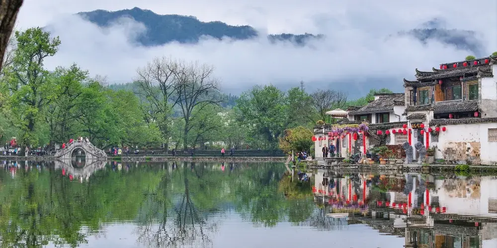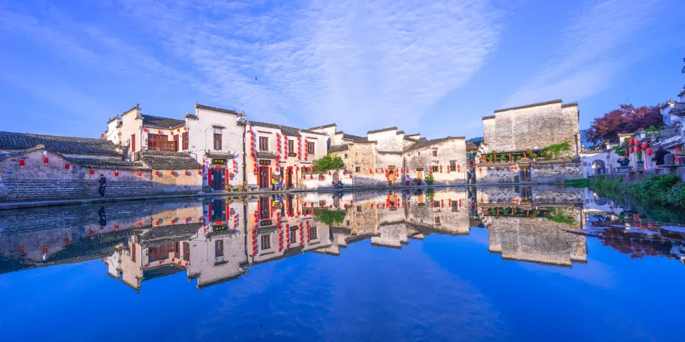 宏村景區是徽派古村中的代表,有“中國畫里鄉村”的美譽。來宏村一是看水利系統帶來的水景,南湖、月沼是精華所在,二是看建築上的徽派三雕,磚雕、石雕、木雕,像剪紙一樣精細,人文景觀與自然景觀很好地融為一體。而來此寫生的美院學生又是另一道風景。
