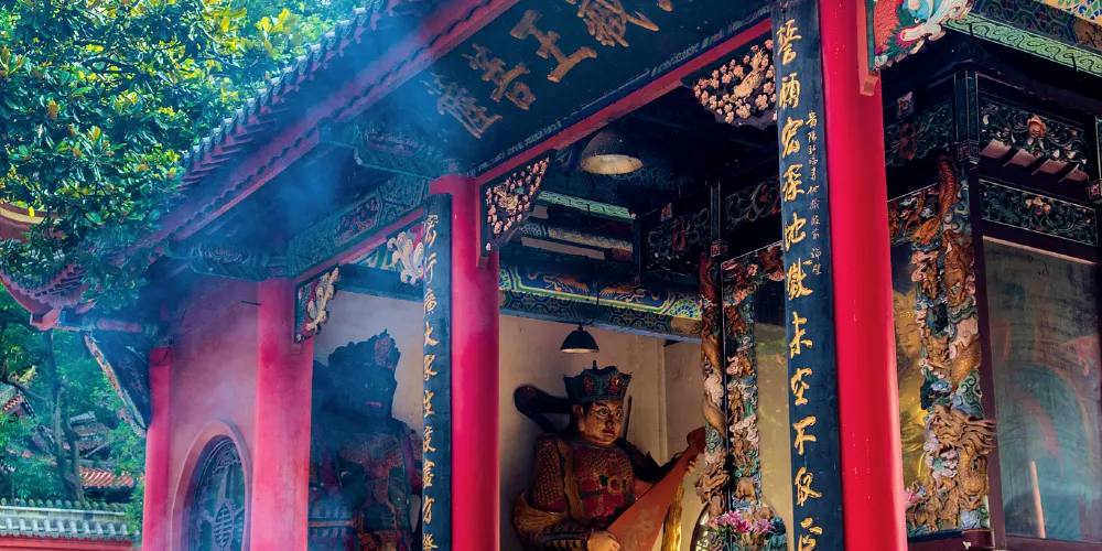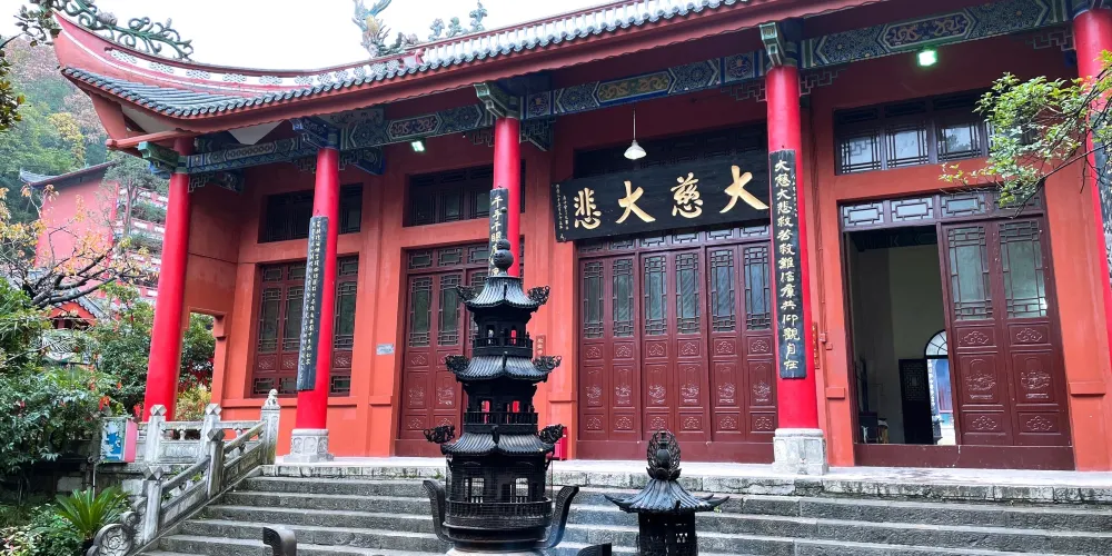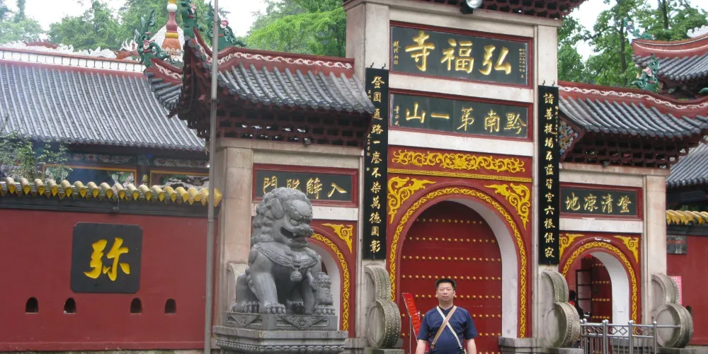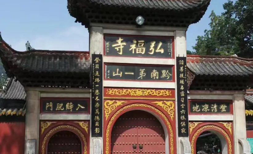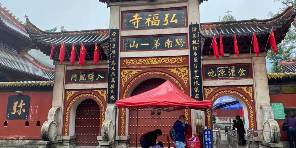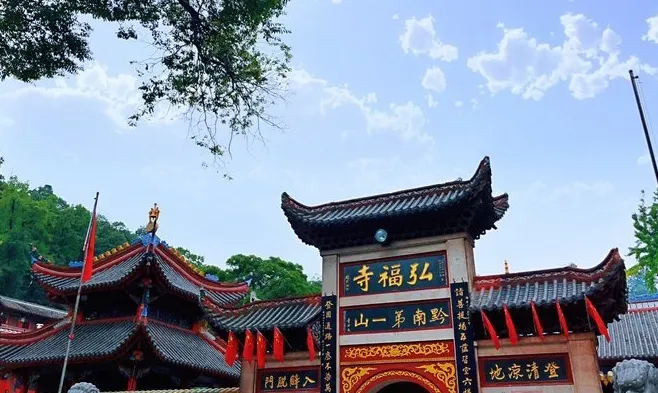 黔靈山公園-弘福寺坐落於貴陽黔靈山上,始建於1672年,是貴陽有名的佛教寺院,素有「貴州首剎」之稱。寺內有摩岩石刻、徐霞客遊過的古佛洞、歷代長老塔林等古代遺跡,而寺廟本身素以祈福靈驗著稱,因此香火十分旺盛。黔靈山公園-弘福寺建於清代康熙十一年,由赤松和尚所開創,「弘福」二字乃「弘佛大願,救人救世;福我眾生,善始善終「之意。整座寺廟坐落於黔靈山群峰中心,黔靈山公園-弘福寺雖然不算大,但寺內格局嚴謹,建築威嚴,更因掩映於一片綠色之中,顯得古風十足。