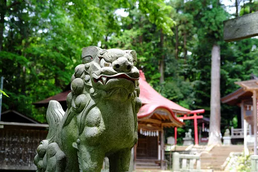 神社創建於江户時代初期,環境優美,神社內有一座紅眼貓的雕像。