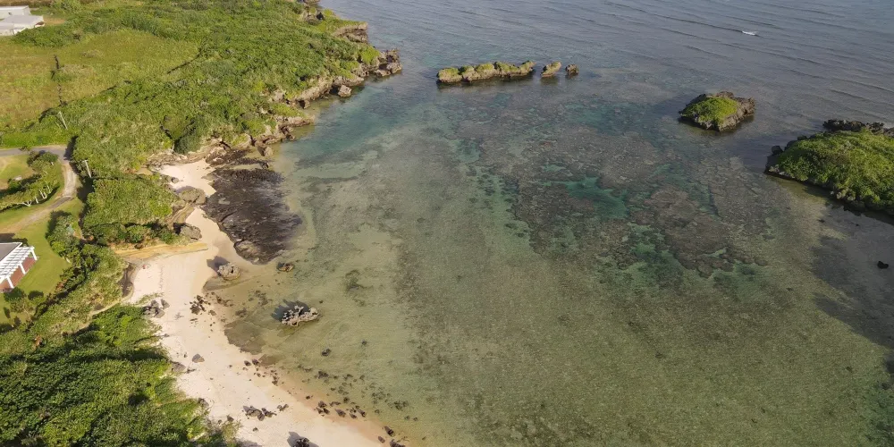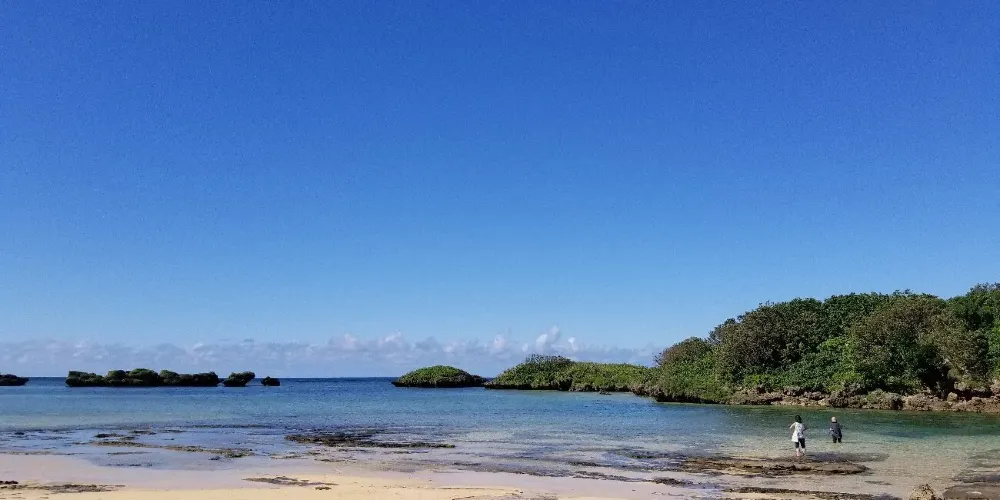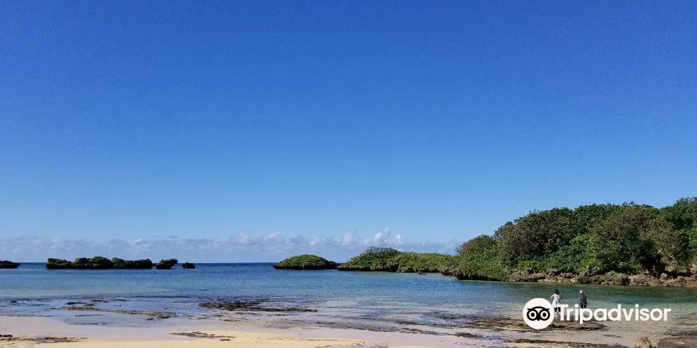 一個由珊瑚蟲遺骸(星砂)所構成的獨特海灘。風景秀麗、海水清澈,是沖繩星砂飾品的產地,絕對值得一遊。