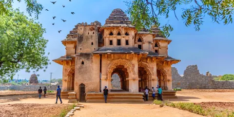Vithala Temple Complex是一個極為壯麗和富有歷史意義的寺廟群落,代表了維傑亞那加拉王朝建築藝術的精華。它融合了宗教、藝術與自然環境,為遊客提供了穿越時空的精神與美學旅程。廟宇面向東方,進入後首先映入眼簾的便是巨大的院落與圍牆門樓,其風格莊重而精美。內部有多座禮拜殿、奉神殿、慶典廳、婚禮廳等,各建築雕刻繁復,牆壁與柱子上佈滿了浮雕與神話故事——舞者、音樂家、神獸等形象栩栩如生。廟區中引人注目的,是石製戰車造型的神龕,象徵著神靈的坐騎,是這座寺廟的標誌性景觀。更驚豔的是那些「音樂柱」:柱子敲擊時會發出不同的音調,好像古代工匠將聲音藏入石頭之中。