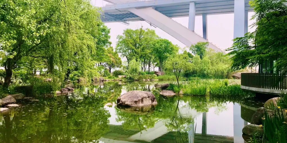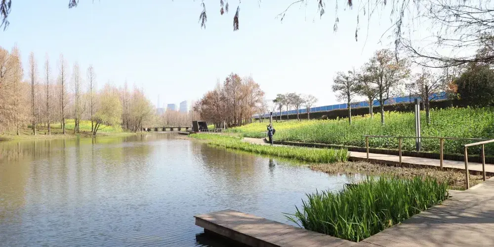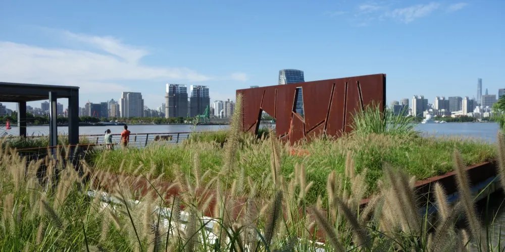 如今沒有了世博會時的熙攘人流,反而更顯清幽。公園很大,沿黃浦江一直綿延到世博演藝中心。草坪、濕地、雕塑等布局清晰,錯落有致,大片的茅草和蘆葦,一派自然鄉野景色。配套設施完善,座椅蠻多,走累了可以隨時坐下休息。