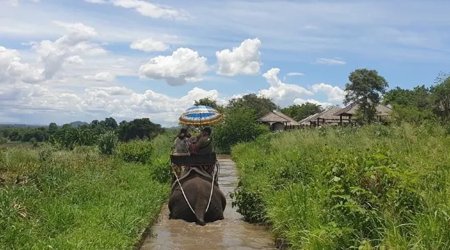 途中有一段路程會經過村內居民的屋舍,欣賞著這一切屬於泰國的自然、當地人的生活,有一種融入當地的熟悉。想象著從前泰國人騎著大象行進在叢林間,那種與大象互依互存的關聯,如今還存在,只是換成觀光的方式。