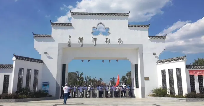 花朝河灣旅遊區位於新洲區潘塘街羅楊村,在空間佈局上,景區呈“一心一帶,四園區”,通過大小交通環線將景區各個主要景點串聯在一起,讓遊客移步換景、賞心悦目。“一心一帶”指整個園區以花朝文化演繹為主題核心,隨河灣水系帶而動。“四區”為:遊樂觀賞區、種植採摘區、紅葉露營區、生態保育區。