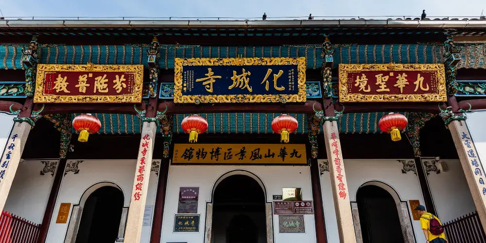 化城寺位於池州市東南50公里處的佛教勝地九華山上,佛經有“指地化城”的說法,這就是化城寺的由來。化城寺是九華山歷史悠久的開山主寺,地藏菩薩的道場。寺廟主體建築沿中軸線排布,共四進,由南到北依次為靈官殿、天王殿、大雄寶殿、藏經樓,前三進為清代建築,後一進為明朝建築。大雄寶殿氣勢恢宏,窗戶上雕著花飾,門楣刻有冰紋,非常精緻。進入大殿一定要抬頭看屋頂,藻井上彩色的“九龍戲珠”雕飾為藝術珍品。