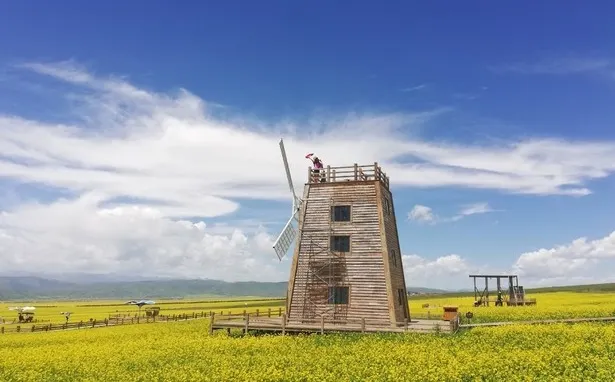 花海鴛鴦,也稱亂海子、眼睛湖,距門源“門源百里油菜花海”核心景區十多公里,是祁連山草原重要組成部分。花海鴛鴦景區湖面由八掰蓮花似的山包擁簇,與崗什卡雪峯相映成趣。春夏季節,時有幾百衹藏鴛鴦,在湖區隨波嬉戲,被稱為“愛情鳥的樂園”。