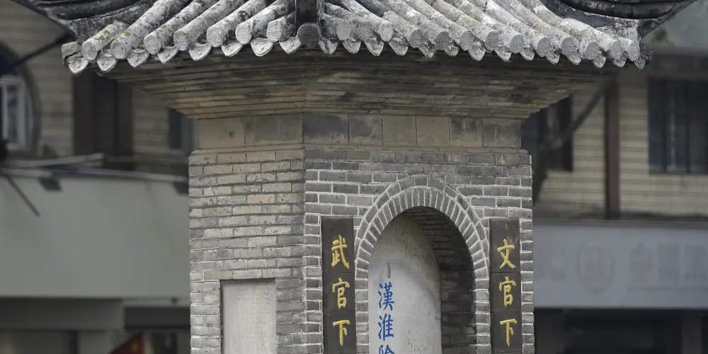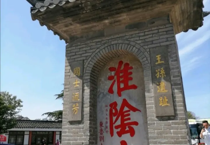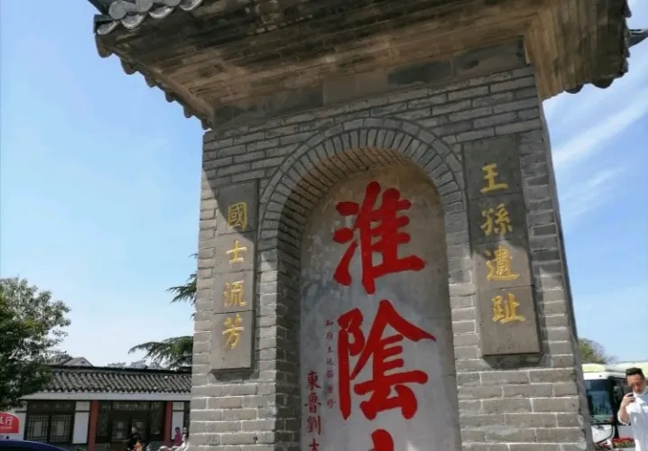 古“淮陰市”碑,為紀念韓信受封淮陰侯所立,後因年久蝕損,明代萬曆年間由都指揮僉事兼鎮漕運的王廷器於萬曆25年(1597)捐資重建,碑正面陰刻“淮陰市”三個大字,兩邊有碑聯,上聯書“王孫遺址”,下聯為“國士流芳”,北面刻着“漢淮陰侯韓信故里”,兩側有警示聯一副,上為“文官下轎”,下為“武官下馬”。在1968年“文革”破“四舊”期伺,先是“紅衞兵”用黃紙封蓋,後被摧毀運走,放在城北大隊市河邊作為水碼頭的墊腳石之用。至1987年北門大街拓寬時,城建局我回殘碑體的三分之一,放在勺湖碑匿內存展,並在府市口(原碑舊址北30米處)仿照明代原貌建立“淮陰市”碑,供人訪古懷舊。