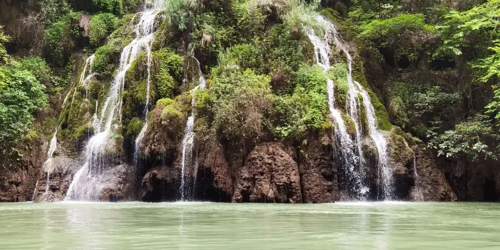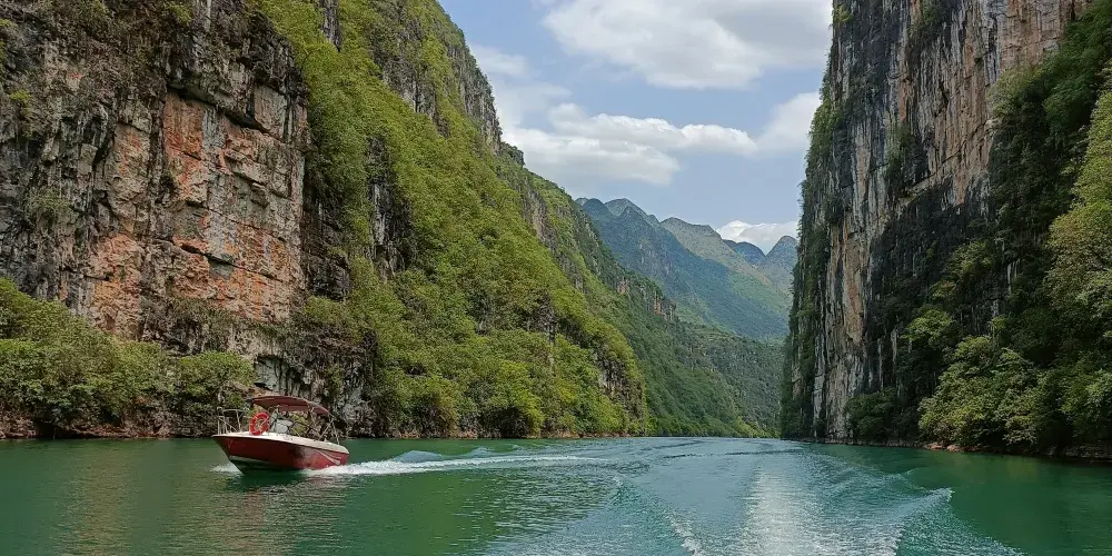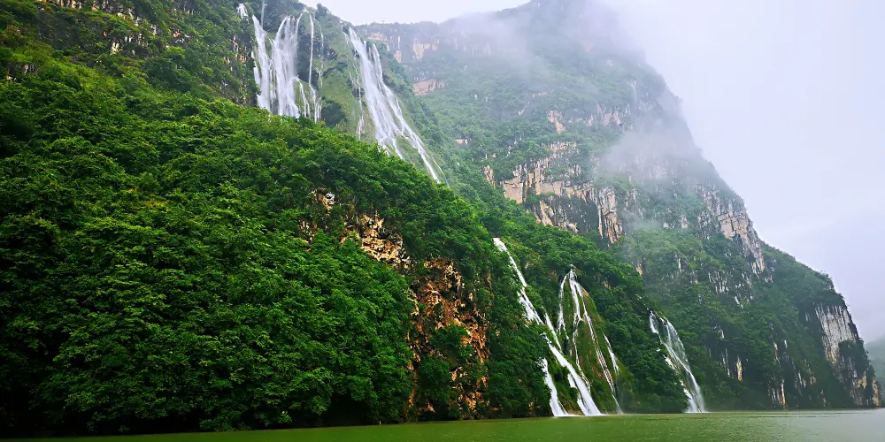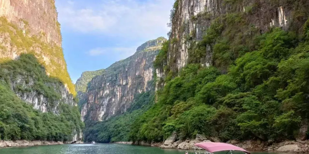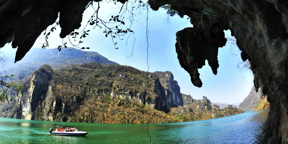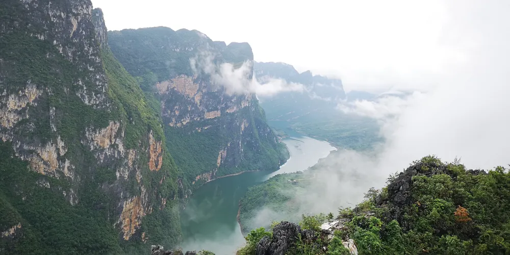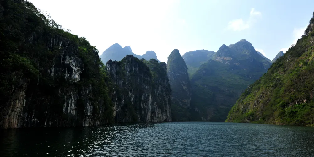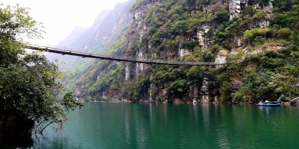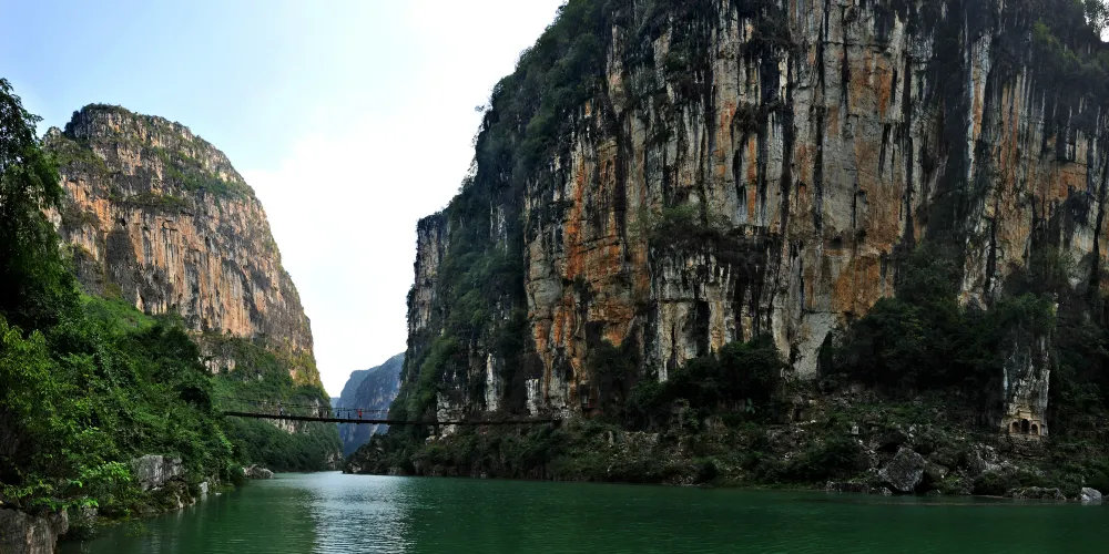 花江大峽谷位於貴州省安順市西部,西起崗烏鎮的毛草坪,東到板貴鄉的三江口,全長約80公里,雄奇、宏大、險峻、神秘。花江大峽谷屬典型的喀斯特岩溶地貌,岩溶發育良好,形態種類多樣,峰林、峰叢、石林、溶洞、溶丘、瀑布、暗流、伏流、漏斗等等一應俱全,堪稱貴州喀斯特地貌類型最齊全的亞熱帶岩溶景觀博物館。整個區域共分為5個景區,即夾山景區、鐵索橋景區、下瓜寨景區、盤江橋景區和古生物化石景區。壯美的自然景觀和古樸濃郁的民俗風情,構成了花江大峽谷「雄奇、宏大、險峻、神秘」的鮮明特色。