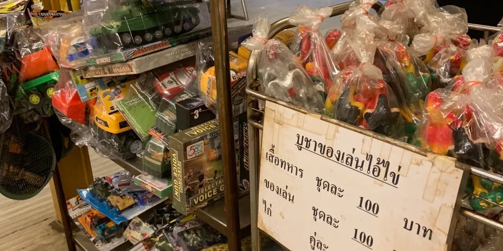 进入四面佛的围栏,右手边有卖烧香用的贡品。拜四面佛要顺时针方向逐面拜。双掌合十,把香夹在两手掌之间,或跪或拜都可以。